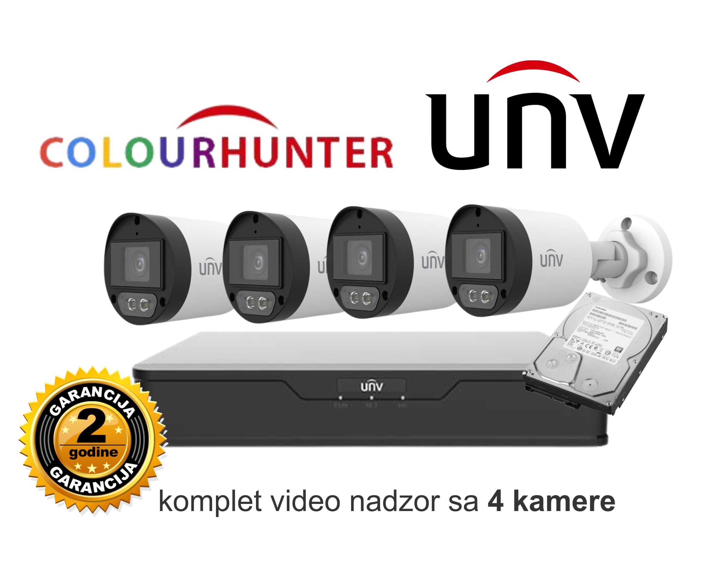 Video nadzor UNV komplet sa 4 kamere ColourHunter slika u boji uvijek